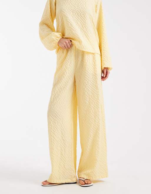Vero Moda bow back textured long sleeve top and wide leg trouser set in yellow
