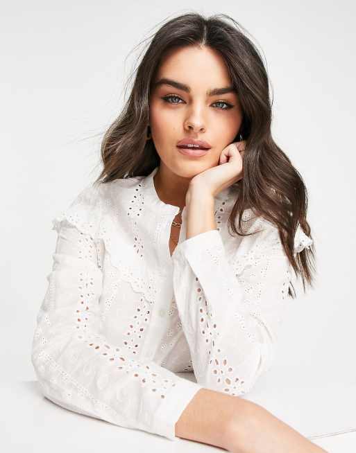Vero Moda broderie ruffle shirt in white