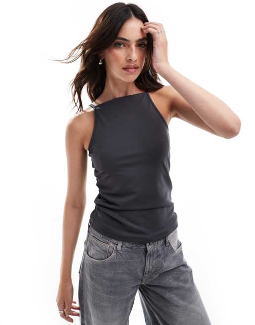 Vero Moda high neck jersey tank top in asphalt grey