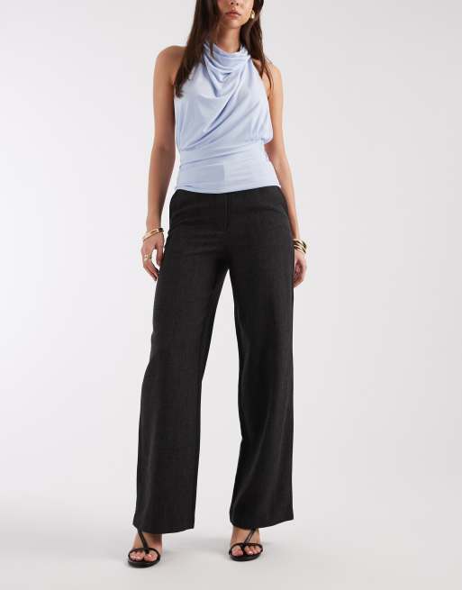 Vero Moda high waist wide leg trouser in dark grey melange