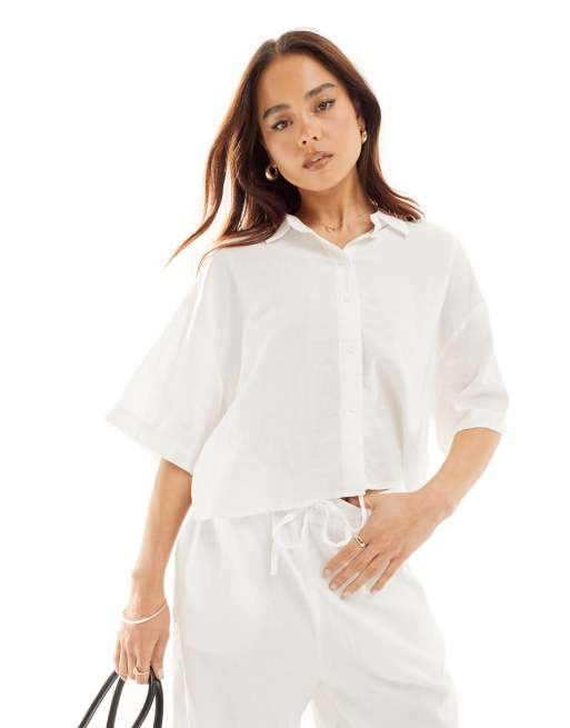 Vero Moda linen boxy short sleeved shirt co-ord in white