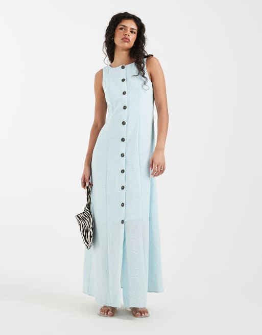 Vero Moda linen look button front maxi dress in delicate blue