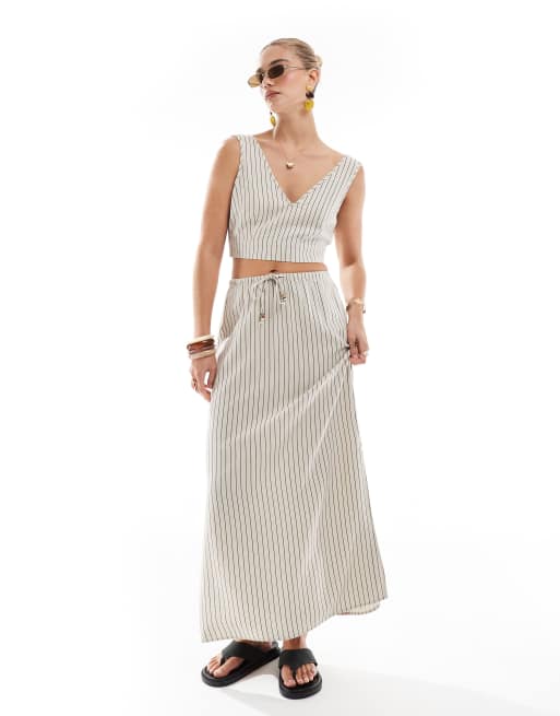 Vero Moda linen touch crop top and maxi skirt co-ord in stone stripe