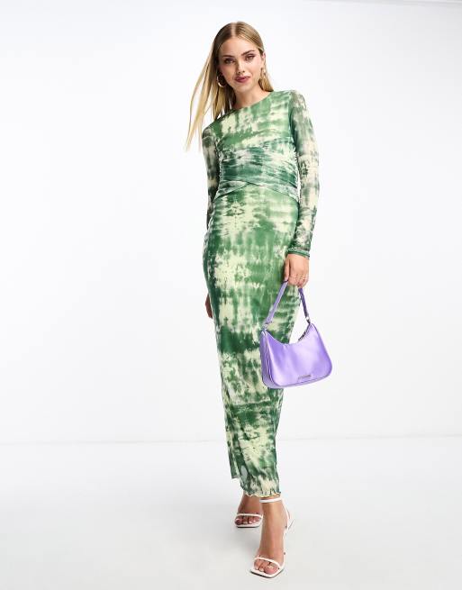 Vero Moda long sleeve abstract mesh bodycon midi dress in green