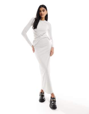 Vero Moda long sleeved ribbed jersey maxi dress in stone