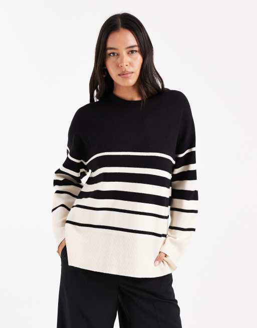 Vero Moda o neck jumper in black with cream veriegated stripe