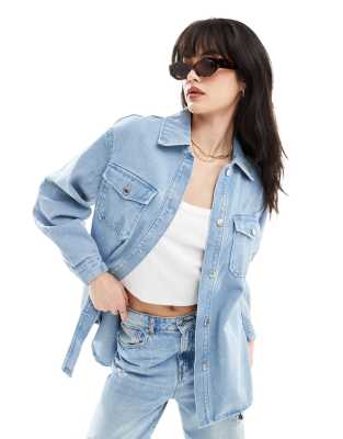 Vero Moda oversized shirt jacket in light blue denim wash