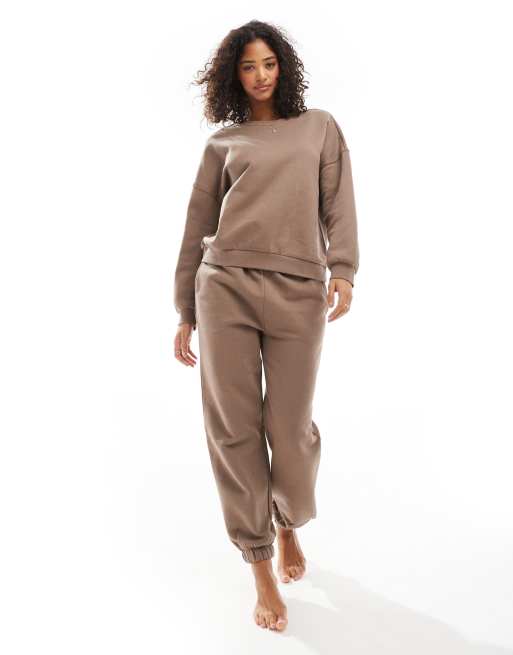 Vero Moda oversized sweatshirt and cuffed jogger set in brown