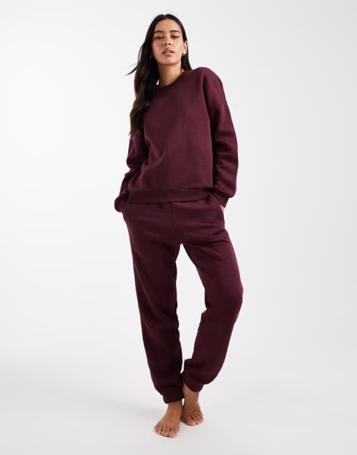 Vero Moda oversized sweatshirt and jogger co-ord in burgundy