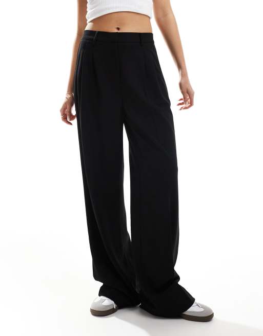 Vero Moda pleat front jersey crepe dad trousers in black