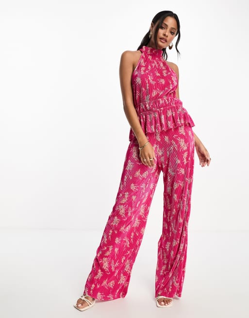 Vero Moda plisse halter top co-ord in pink florals