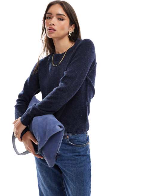 Vero Moda round neck knitted jumper in navy melange