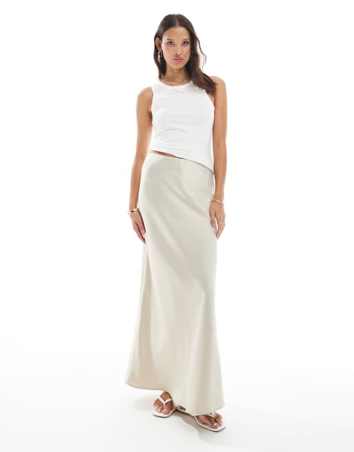 Vero Moda satin bias midi skirt in stone