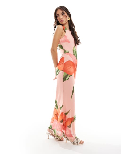 Vero Moda sleeveless seam front mesh dress in overblown hibiscus floral print