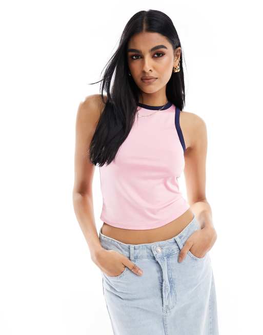 Vero Moda sporty tank top with contrast trim in pink