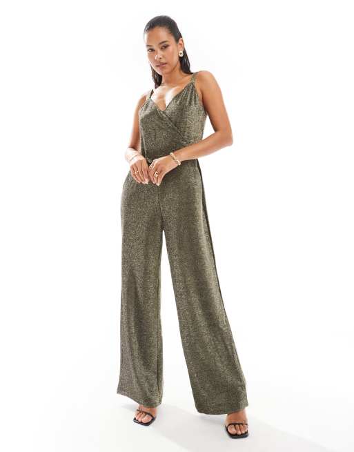 Vero Moda strappy wide leg jumpsuit in black and gold glitter