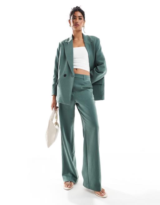 Vero Moda tailored herringbone wide leg co-ord trousers in dark forest green