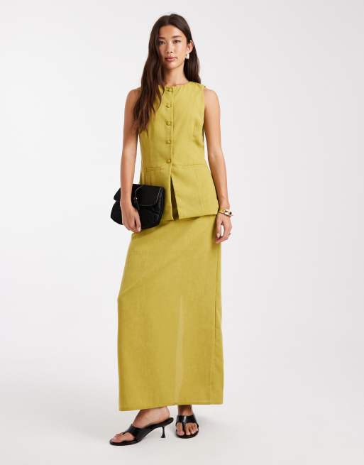 Vero Moda tailored waistcoat and skirt co-ord in chartreuse