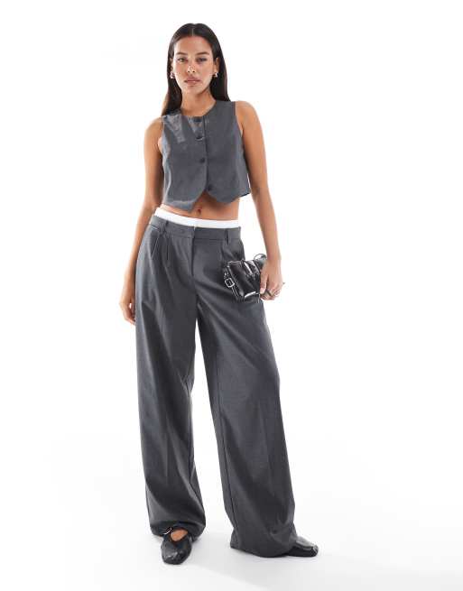 Vero Moda wide leg boxer detail trouser co-ord in dark grey melange
