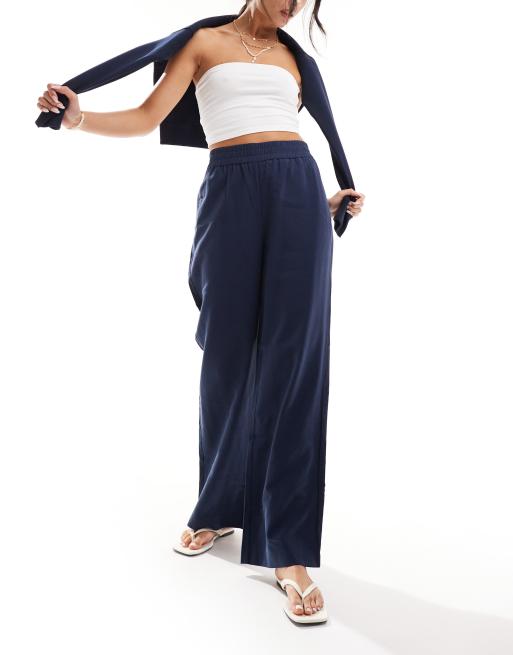 Vero Moda wide leg pull on trousers with elasticated waist in navy