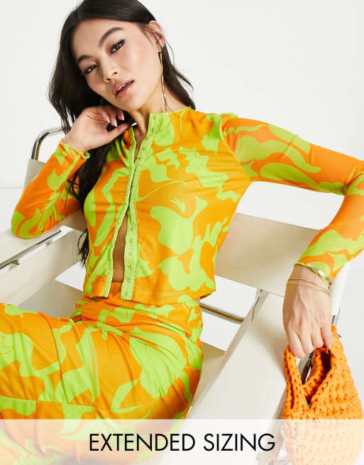 Vero Moda X Joann Van Den Herik mesh long sleeved top co-ord with seam detail in orange and lime print
