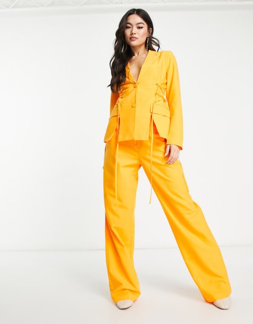 Vero Moda X Joann Van Den Herik tailored corset side blazer co-ord in orange