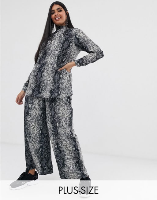 Verona Curve high neck long sleeved top and wide leg trouser in python print
