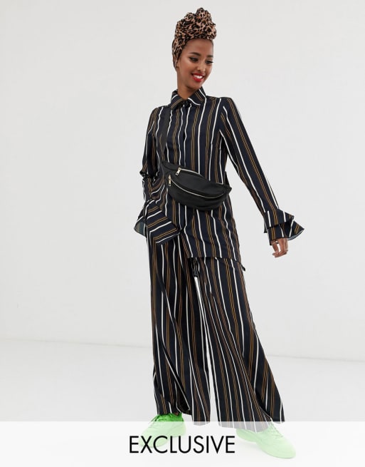Verona long sleeve shirt and wide leg trouser co-ord in multi stripe