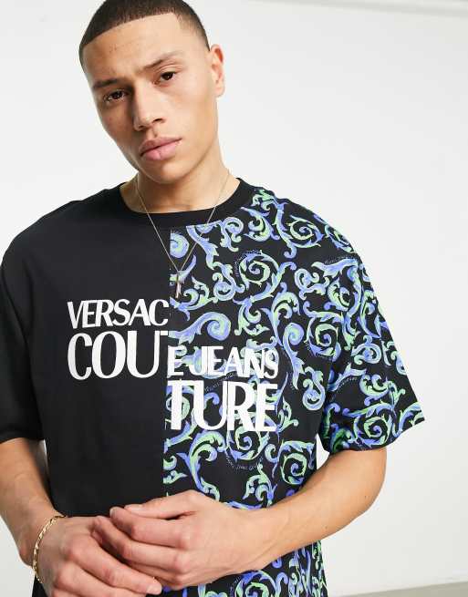 Versace Jeans Couture splice print oversize t-shirt in black
