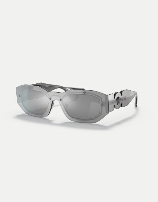 Versace biggie irregular sunglasses in grey with silver mirrored lens in transparent grey mirror silver