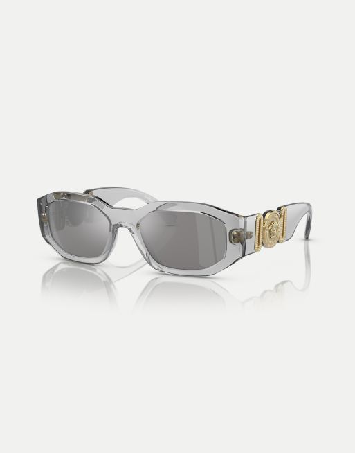 Versace biggie irregular sunglasses in grey with silver mirrored lens in transparent grey