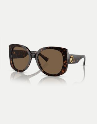 Versace rectangle sunglasses in tortoise with brown lens in dark brown