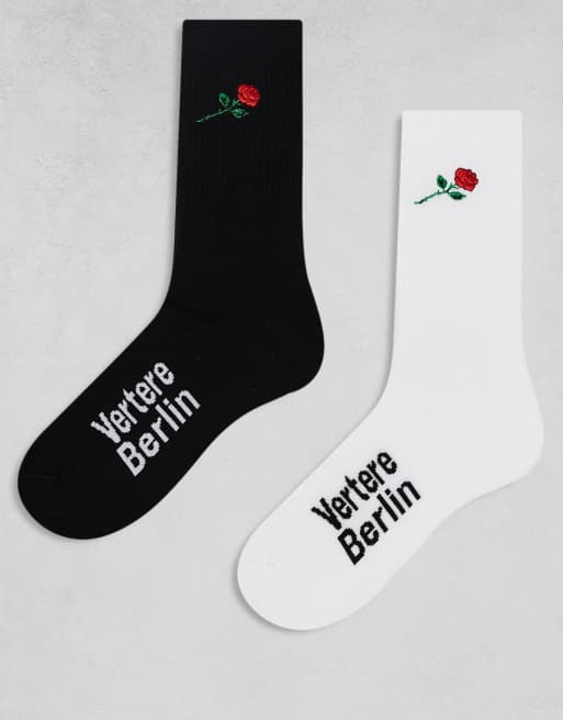 Vertere Berlin 2 pack contrast embroidered rose socks in multi
