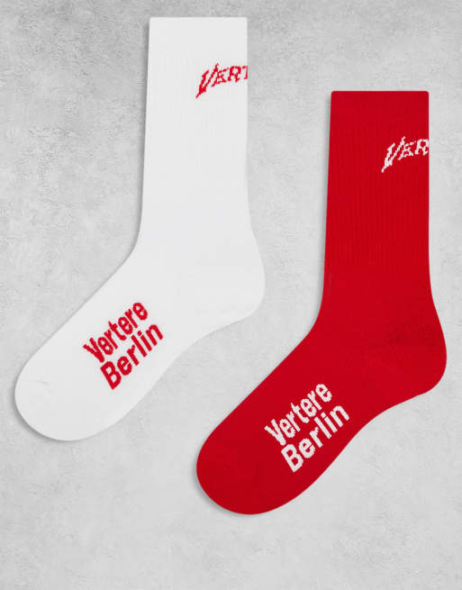 Vertere Berlin 2 pack contrast logo socks in red and white