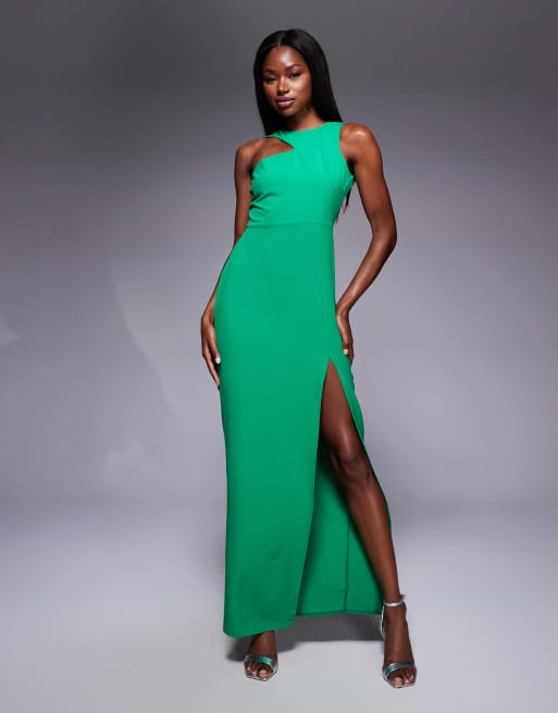 Vesper Asymmetric maxi dress with thigh split in emerald