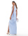 Vesper bengaline one shoulder drape detail thigh split maxi dress in baby blue