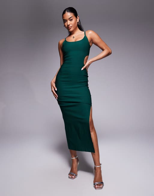Vesper Square neck bodycon midaxi dress with cut-out in forest green