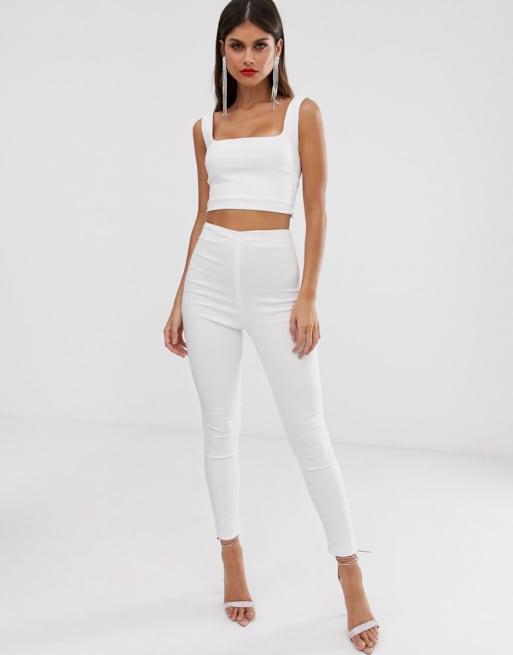 Vesper square neck crop top & tailored trousers co-ord in white