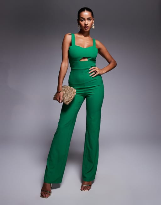 Vesper Sweetheart neckline wide leg jumpsuit in emerald