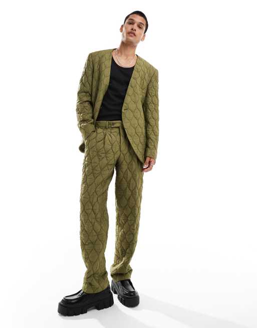 Viggo casual oversized suit trousers in quilted khaki co-ord