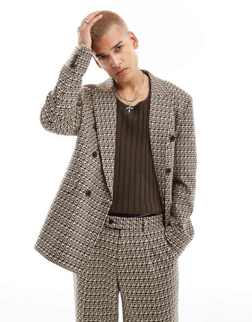 Viggo fernandes double breasted oversized checked suit jacket in tan