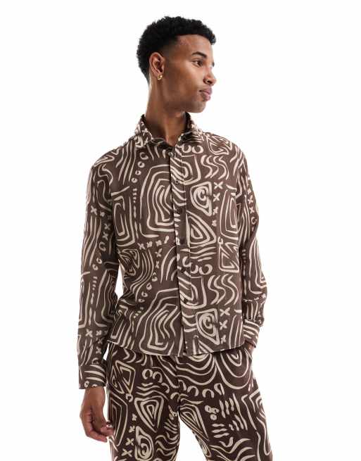 Viggo relaxed shirt in dark brown abstract print co-ord