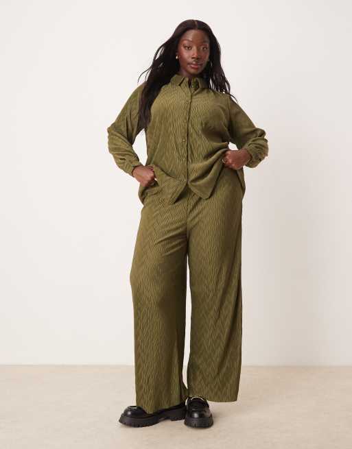 Vila Curve plisse wide leg trouser co-ord in dark olive