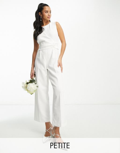 Vila Petite Bridal tailored jumpsuit with knot front in white
