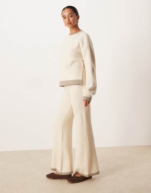 Vila Petite contrast trim knitted jumper and trouser co-ord in cream