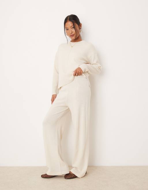 Vila Petite knitted trouser co-ord in cream