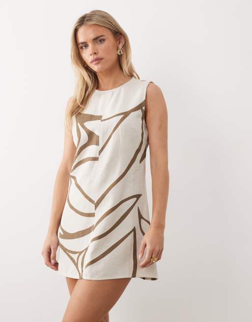 Vila Petite linen touch sleeveless mini dress in brown floral print
