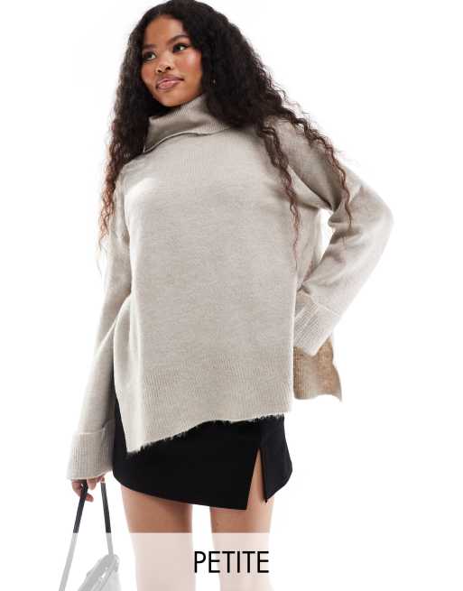 Vila Petite roll neck oversized jumper with turn up cuff in natural melange
