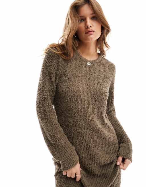 Vila Petite super soft fluffy maxi jumper dress in brown