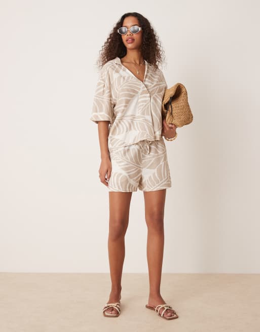 Vila boxy polo detail top and high waisted shorts set in oversized tonal leaf print